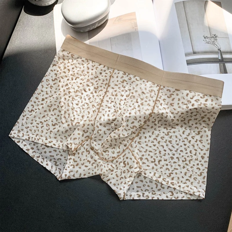 Men's Sexy Ultra-Thin Transparent Leopard Print Ice Silk Boxer Briefs